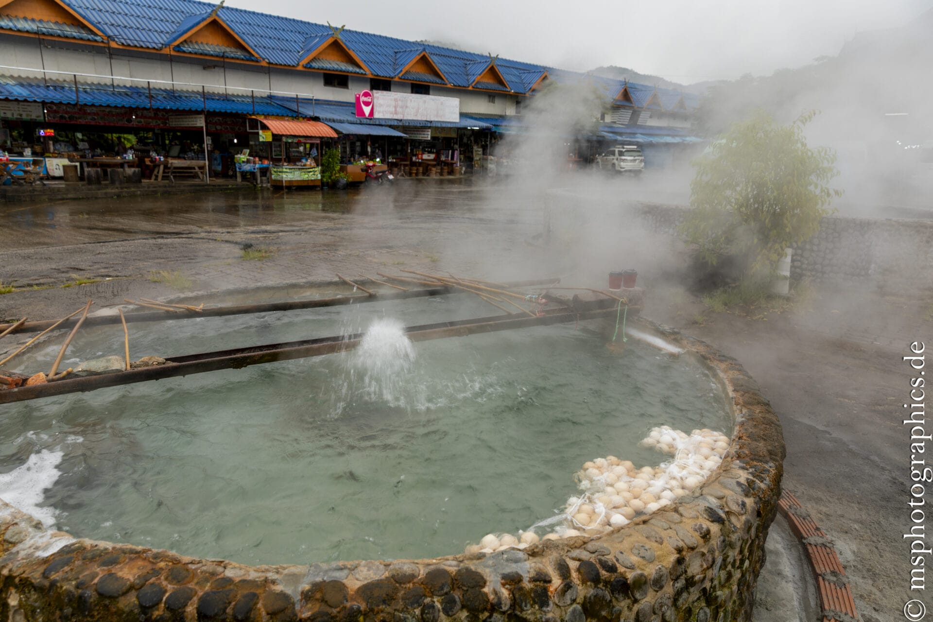 Die Mae Kachan Heißwasserquelle ist eine der berühmtsten in der Gegend von Chiang Rai. Die Becken sind derart heiß, dass sie sich zum Eierkochen eignen.