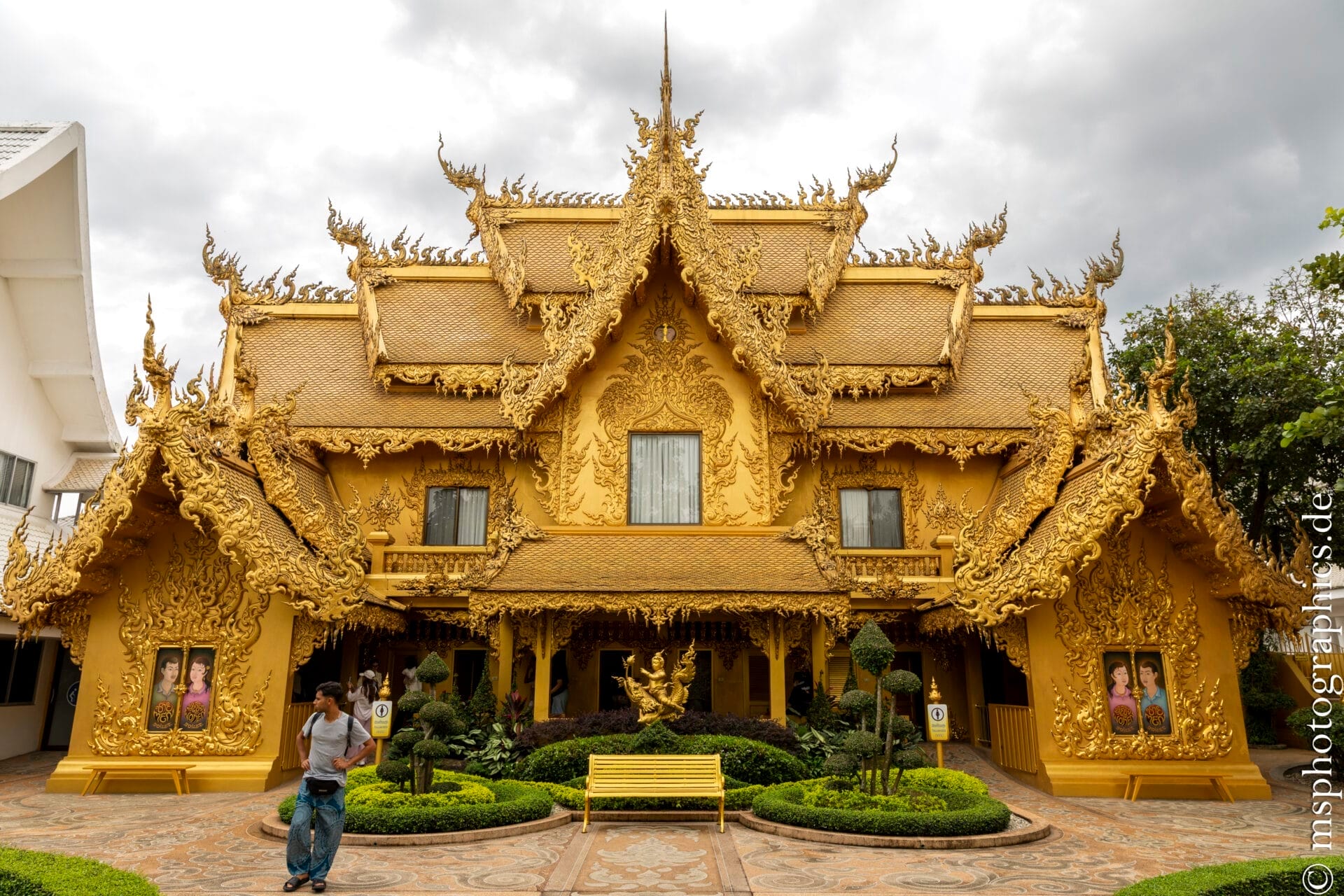 Die Wandmalereien im Inneren überraschen viele Besucher. Popkulturelle Motive, futuristische Szenen und moderne Ikonen sind hier in eine buddhistische Weltanschauung eingebettet. Chalermchai nutzt sie, um Chaos, Gier und weltliche Ablenkung darzustellen. Ein bewusst provokativer Stil, der den Tempel weltweit bekannt gemacht hat.