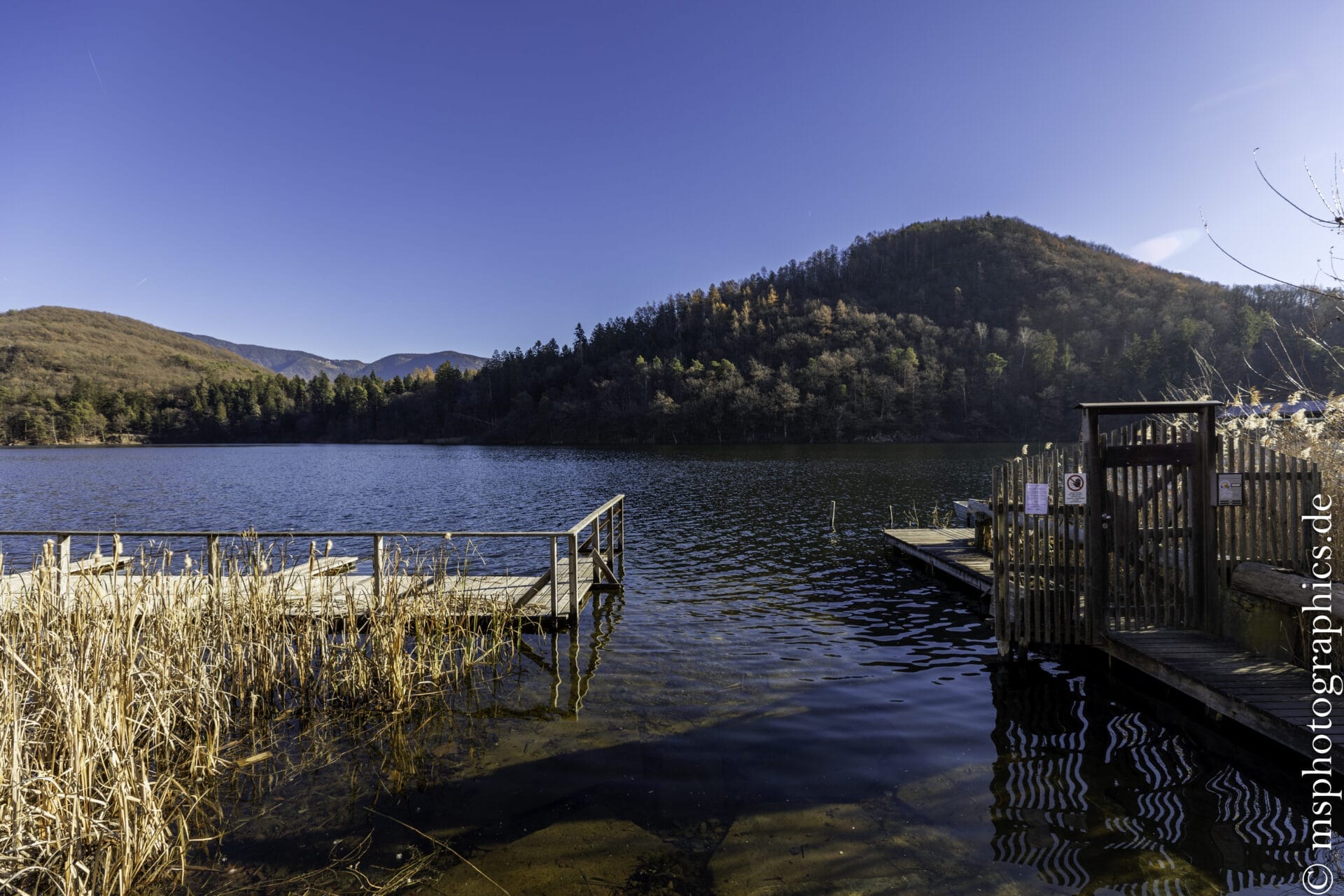 The path runs partly along the shore, partly through the shady mixed forest, where pines, beeches, and oaks create a Mediterranean atmosphere. Beautiful views of the water surface open up again and again, changing colors depending on the season. From emerald green in spring to deep blue in summer and framed by colorful leaves in autumn.