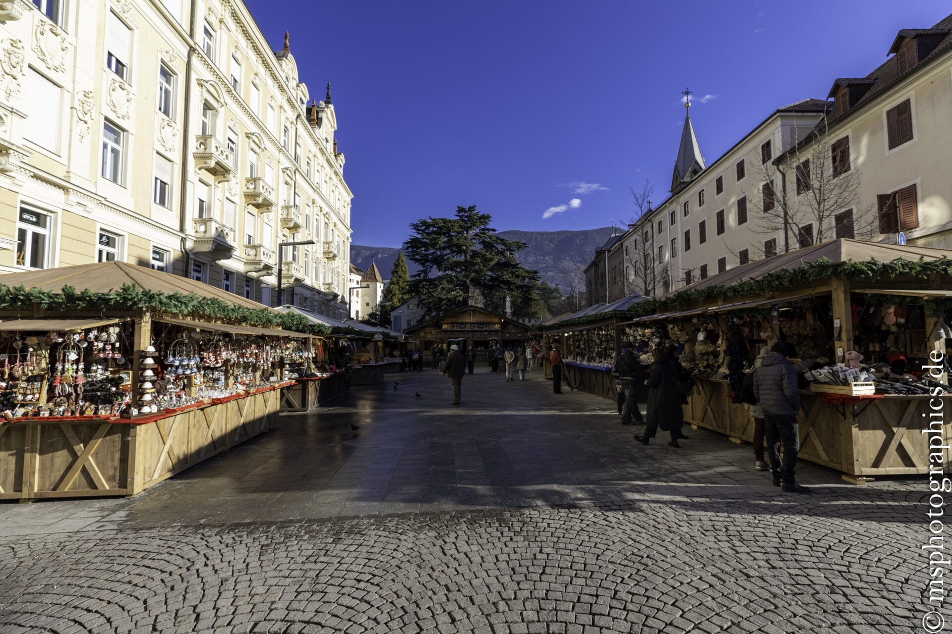 The Merano Christmas market seems almost unreal, surrounded by Mediterranean plants and snow-capped mountains.