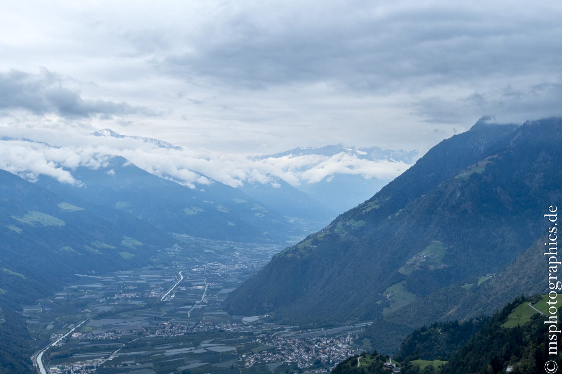Oberhalb der Orte Vellau bzw. Dorf Tirol finden sich spektakuläre Wanderwege, darunter der Hans-Frieden Felsenweg und der Vellauer Felsenweg.Wer den Aufstieg etwas erleichtern möchte, kann den Korblift nutzen, der direkt von Vellau hinauf zur Leiteralm führt. Von Dorf Tirol benutzt man die Seilbahn Hochmuth zur Bergstation.
